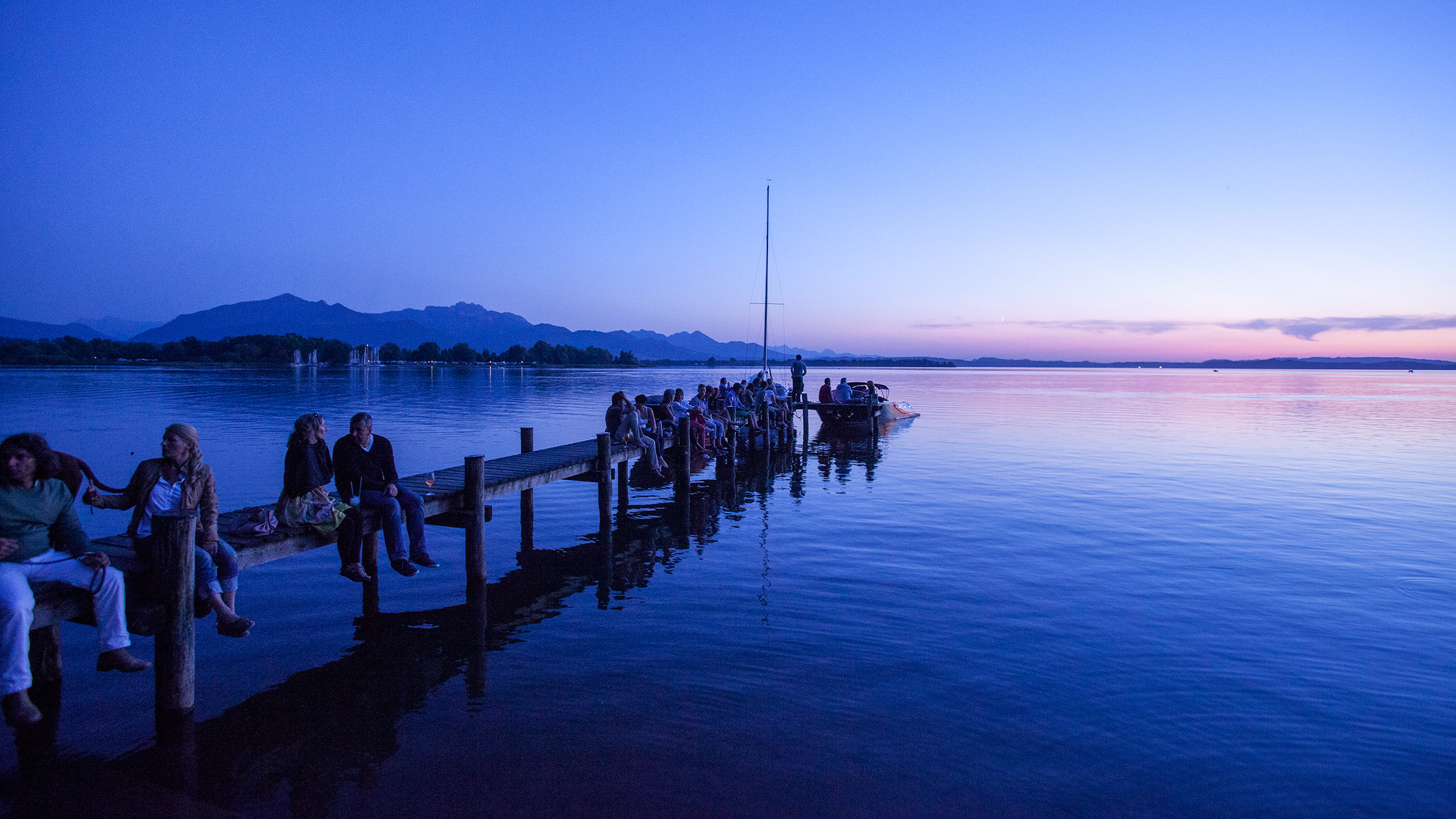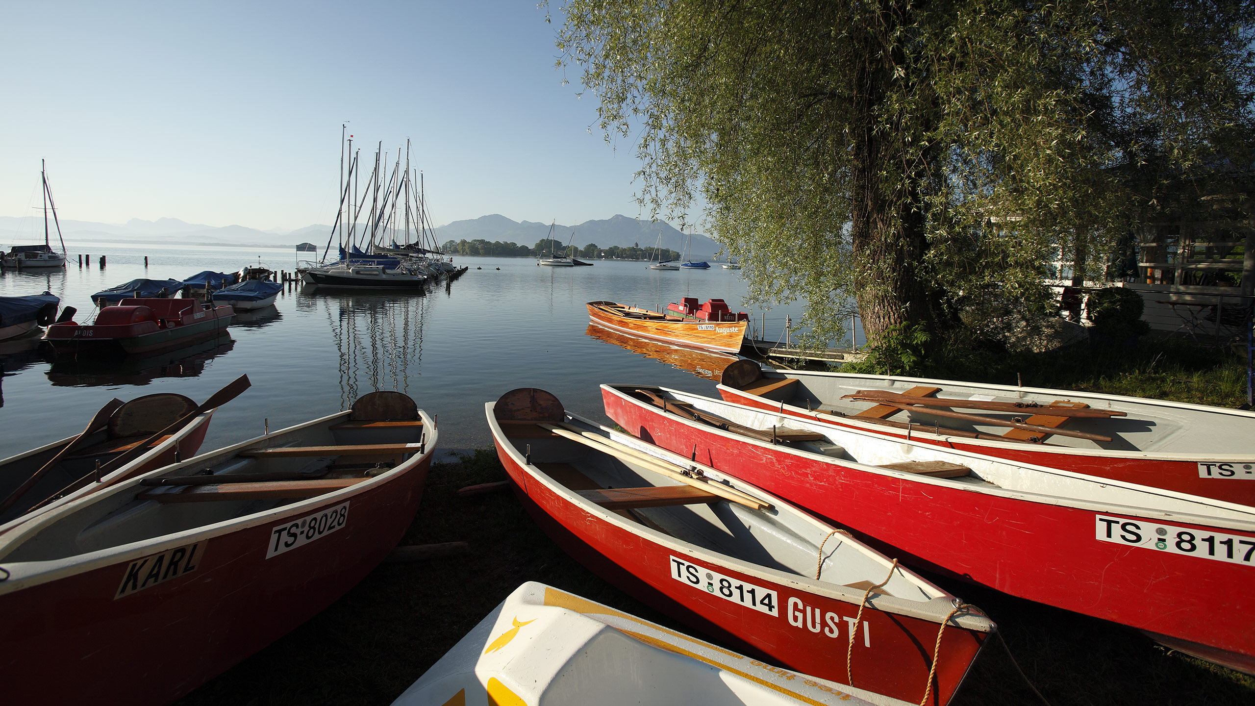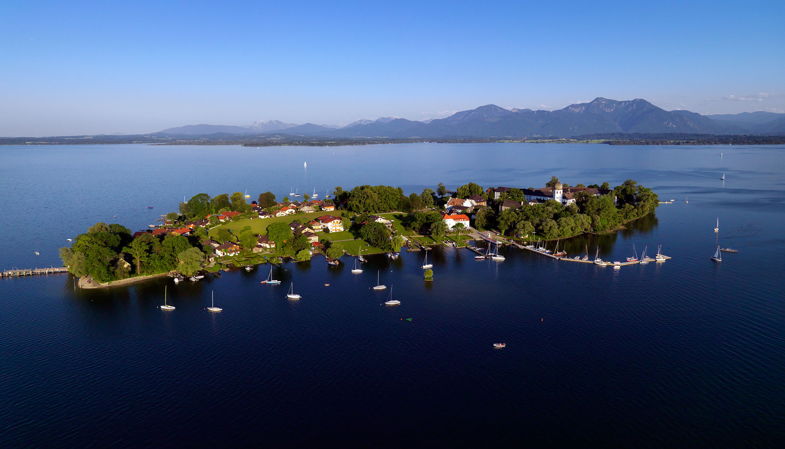 Eingebettet in die malerische Landschaft des bayerischen Voralpenlandes schmiegt sich der kleine Ort Gstadt ans Nordufer des Chiemsees. Von hier aus gibt es die meisten Schiffsverbindungen zur malerischen Fraueninsel mit Ihrem Fischerdorf und dem alt-ehrwürdigen Benediktinerinnen-Kloster, gegründet im Jahr 722, sowie zur Herreninsel mit dem berühmten Schloss des bayerischen Märchenkönigs Ludwig II.